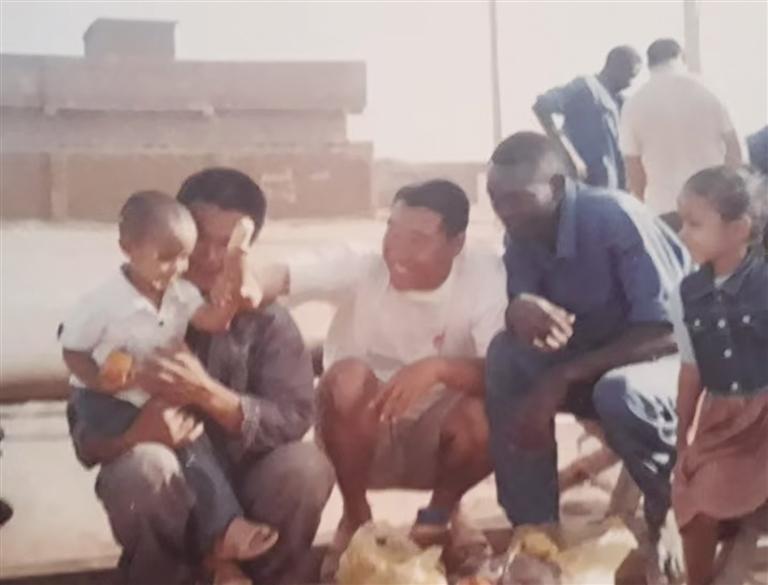 20年前,颜青姐弟与两位赴苏丹援建学校的中国工程师合照