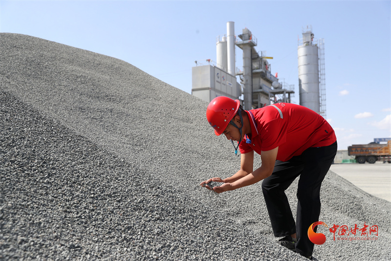 进入6月,肃航公路迎来路面工程施工高峰,沥青拌合料保障成为施工进度的关键之一。特别是进入7月、8月的黄金期,路面摊铺每天以3至4公里的速度推进,沥青拌合站也开始满负荷运转。