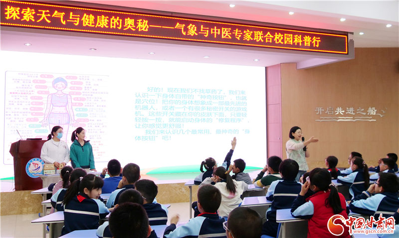 中国甘肃网11月6日讯(西北角·中国甘肃网记者 程健)日前,兰州市城关区一只船小学迎来了一场别开生面的科普盛宴:中医专家与气象工程师携手走进校园,以“探索天气与健康的奥秘”为主题,为孩子们带来了一堂融合气象科学与中医智慧的启蒙课。