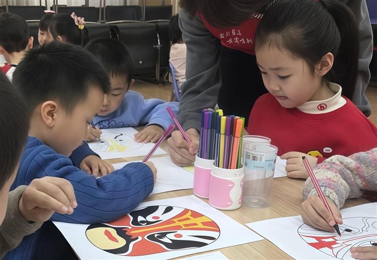 她说:“还有执笔调色的过程,既是手眼协调的创意实践,也是耐心与专注力的培养。当孩子们为自己绘制的‘关公’‘孙悟空’点上最后一笔,传统文化的种子已化作鲜活的审美体验与身份认同,在他们心中播下‘知来处、爱传统’的热爱,让文化自信在童趣创作中生根萌芽。”