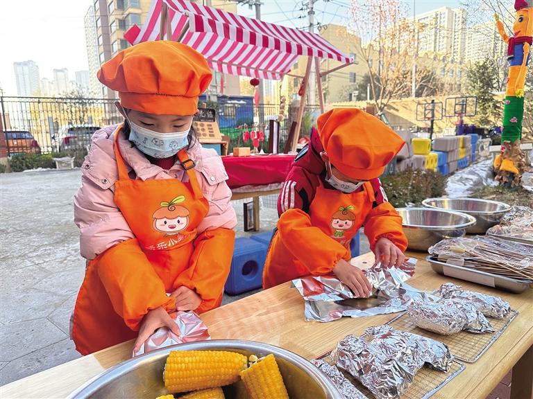 七里河区幼儿园万达分园的孩子们准备烧烤食材