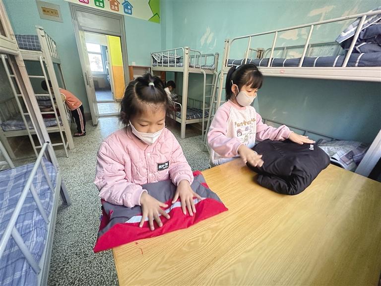 兰州市第二十九中学的学生们在宿舍叠衣服