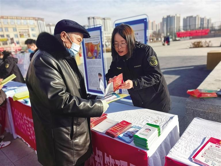 上午10时,中川体育公园的集中活动在庄严的宪法宣誓中启幕,铿锵誓言彰显干部职工忠于宪法的决心。尽管寒意未消,各普法展位前已人头攒动:律师协会与公证处工作人员现场指导规范借条书写,民警结合真实案例警示个人信息泄露风险。法院、检察院人员化身倾听者答疑解惑,民政司法和社会保障局发放的法治大礼包,将政策宣传册与印着法治标语的生活用品送到市民手中。16支社区文艺队伍带来的舞蹈、合唱等节目,用艺术诠释宪法精神,将氛围推向高潮。“原来宪法一直守护着我们的一生。”市民刘先生的感慨道出活动成效。