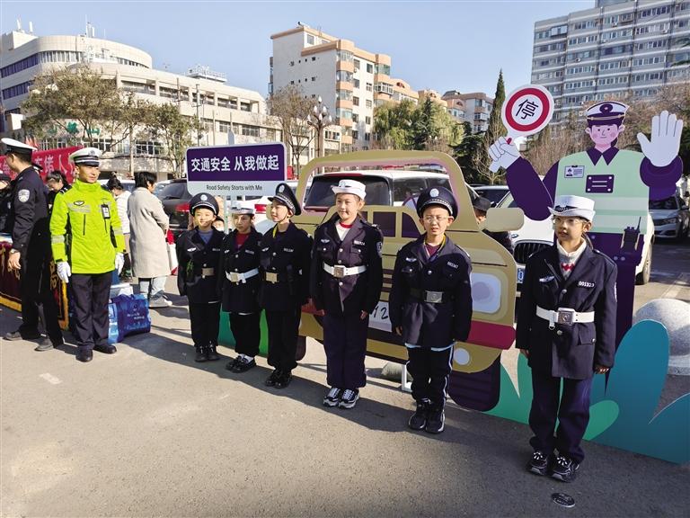 交通安全宣传现场孩子们争当文明宣传员
