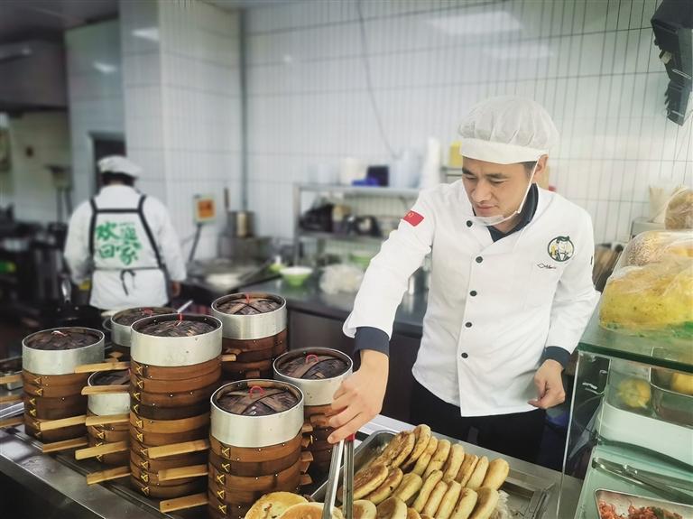 功夫不负有心人,“油条先生”的生意渐渐稳定下来。手工包子皮薄馅足、油条蓬松酥脆,还有小米南瓜粥、胡辣汤、八宝粥等十多种粥品,丰富的品类吸引了络绎不绝的食客,几年间便开出了多家分店。