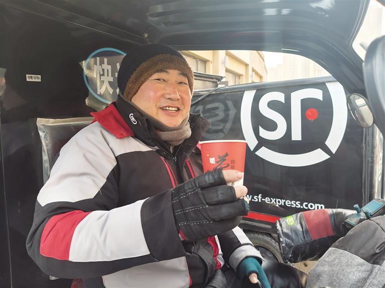 “从市场营销到餐饮,最后在快递行业找到归属感。”他递给员工一杯茶,“冬天户外工作易受凉,姜茶能驱寒保暖,还能缓解疲劳。”