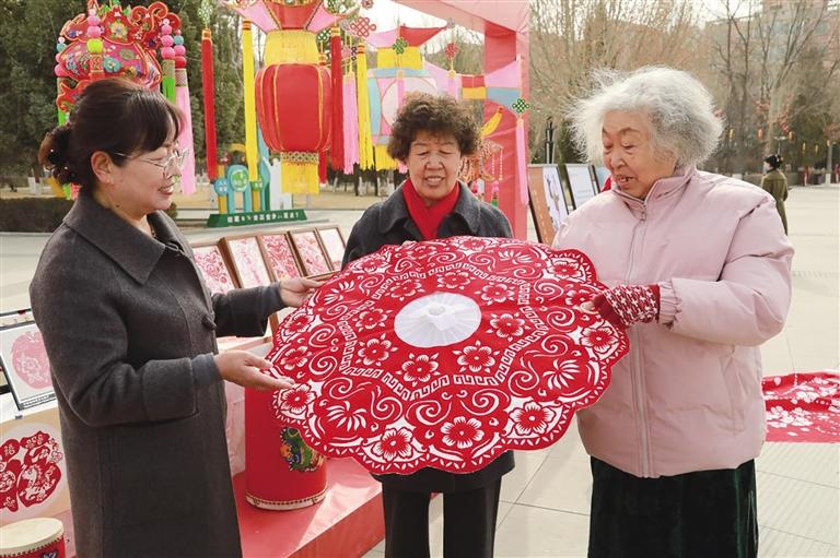 与此同时,多位非遗传承人受邀来到现场,进行剪纸、什川花灯等传统技艺的展示。一把剪刀、一张红纸,在传承人手中上下翻飞,顷刻间便化作栩栩如生的花鸟鱼虫;什川花灯的扎制技艺更是吸引了众多群众驻足观看,一盏盏造型别致的花灯承载着浓浓的年味与乡愁。