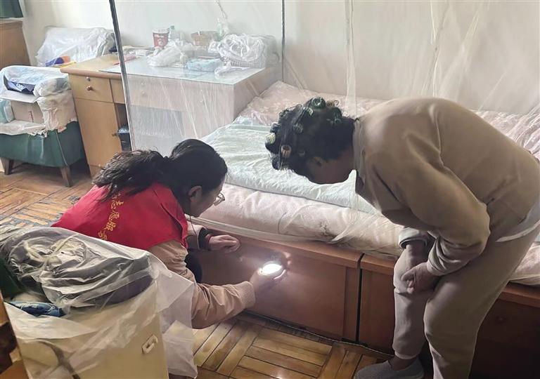 入户走访时,志愿者携带工具,协作有序地开始为老人进行卫生清扫。大家干劲十足,擦拭家具、清扫地面,原本有些杂乱的房间变得窗明几净,纱窗也焕然一新、干净透亮。李奶奶坐在椅子上,看着这一切,脸上洋溢着幸福的笑容,她紧紧握住志愿者的手,声音略带颤抖地感慨道:“谢谢你们常来探望,不仅给我安装了感应灯,还把家里打扫得这么干净,还陪着我说话解闷,让我心里又暖又踏实。”上门服务不仅改善了独居老人的居住环境,更像一束温暖的光,给予他们精神上的慰藉,让老人们真切地感受到社会的关爱与尊重。