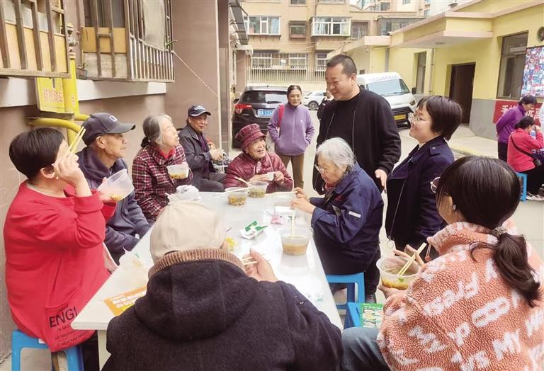 当天,有一些身影悄然穿梭在社区的楼栋之间。社区工作人员与志愿者带着打包好的热乎臊子汤和清爽凉菜,为行动不便的独居、高龄老人送去节日的关怀。