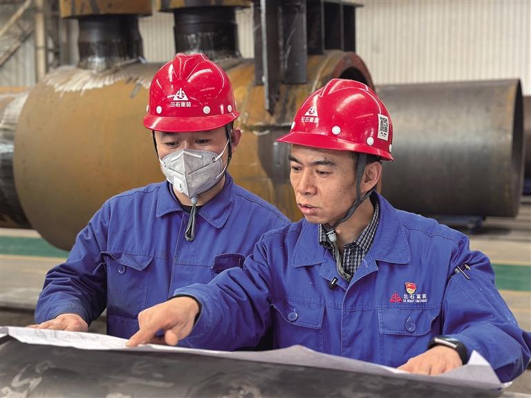 那次教训让蔡明远沉下了心。他意识到,这份工作没有捷径,唯有用心。早年间,他和工友给换热器穿管子,一天砸上千锤,吃饭时手不停地抖。“不能这样干下去。”他们反复琢磨,尝试在安装时就将所有折流板轴线对齐,确保每块板上的管孔精准对位。新方法成功了——原来需要干一天的活,现在半天就能完成,劳动强度大大减轻。