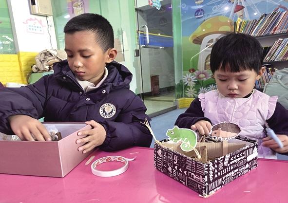 孩子们亲手制作心中的“冬眠旅馆”