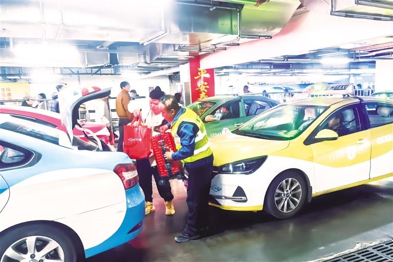 出租车司机李师傅在西客站帮旅客搬运行李。何怡璇 摄