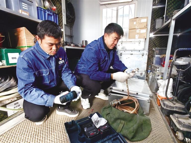 国网兰州供电公司变电检修中心检修员翟宾、高伟峰在检查春节保供电工器具。陶奕冰 摄