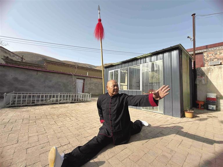 在没退休之前,张业成白天要忙工作,为了不耽误练功,他给自己定下铁律:每天早上5时准时起床。天还没亮,村子静悄悄的,空旷的场地就是他的练功场。压腿、踢腿、劈叉、打拳、练器械,雷打不动练习一个多小时,再匆匆赶去上班。