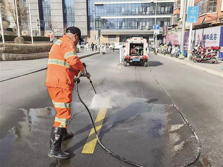 “我们从单一的清扫模式转向‘机械洗扫+高压冲洗+人工精保’的联合作业模式。”正在现场巡查的城关环卫城玉公司人工作业部管理站长王若凡告诉记者,针对春季风沙多、积尘易起的特性,他们加大了涉水作业频次,重点对主次干道、油污路面进行冲洗。